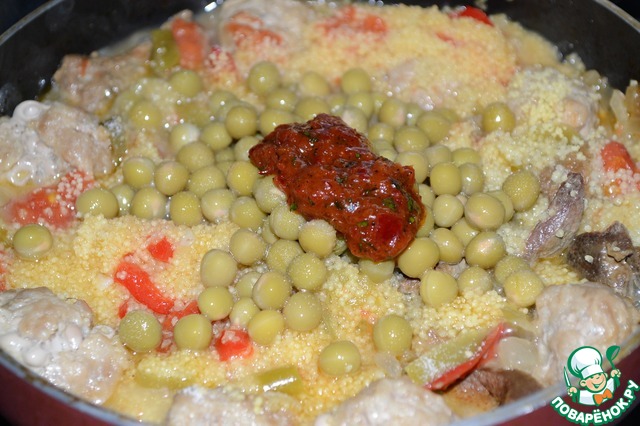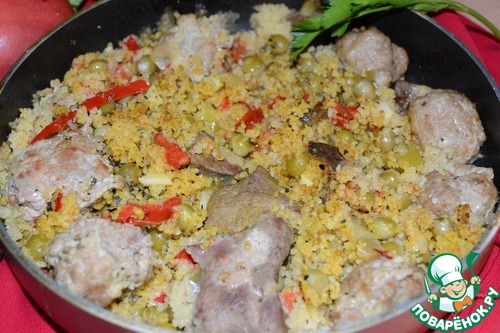 Кускус с печенью, фаршем и овощами
