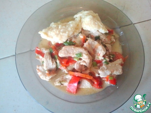 Рецепт "Тушеная свинина с овощами и сырными клецками":