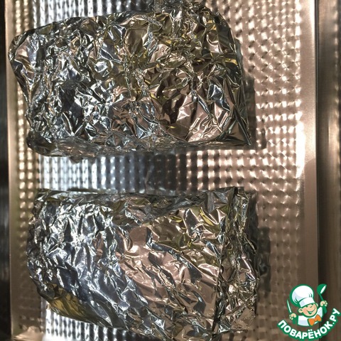 Достаем, разворачиваем и оставляем на 3 минутки. Подаем с любимым гарниром и соусом. Я подавала с обычным пюре и малиновым конфитюром.