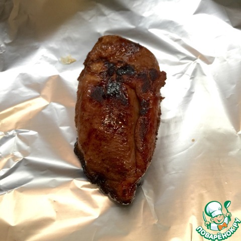 Ставим наши грудки в духовку, разогретую до 200 градусов на 8-12 минут. Всё зависит от того, какой прожарки Вы любите. Мы не любим без крови, поэтому оставила на 12 минут.
