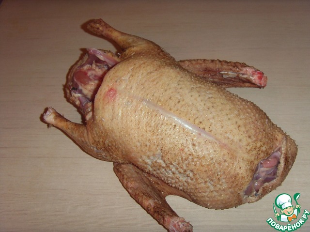 Подготовим индоутку. Моем под проточной водой, слегка очищаем ножом кожу.