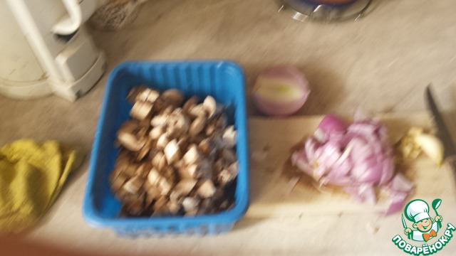 2. Лук, чеснок и петрушку мелко порубить, грибы порезать