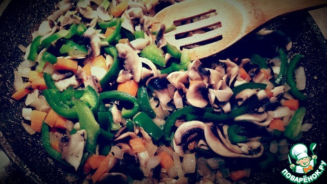 Обжариваем овощи на хорошо разогретой сковородке минут 5 периодически помешивая.