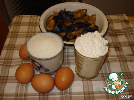 Высыпать в емкость нарезанные на четвертушки сливы. Перемешать.