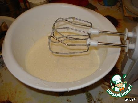 Соединить яйца с сахаром и тщательно, добела взбить. Я взбивала миксером.