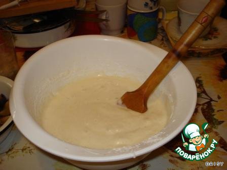 Добавить просеянную муку, соль и осторожно мешать (лучше деревянной) ложкой в одном направлении (лучше по часовой стрелке, к себе).