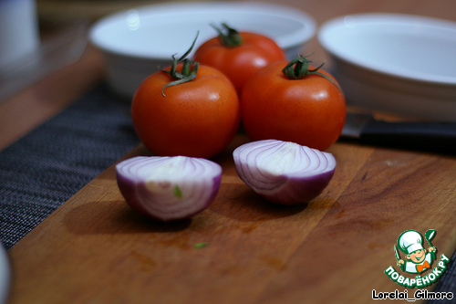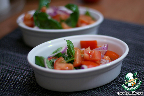 Помидоры, лук, базилик, оливковое масло, соль..