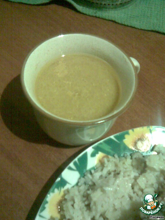 В емкости смешиваем мед (1 ч.л), горчицу (1,5 ч.л), давленый чеснок, сок лимона. Перемешать и развести бульоном.