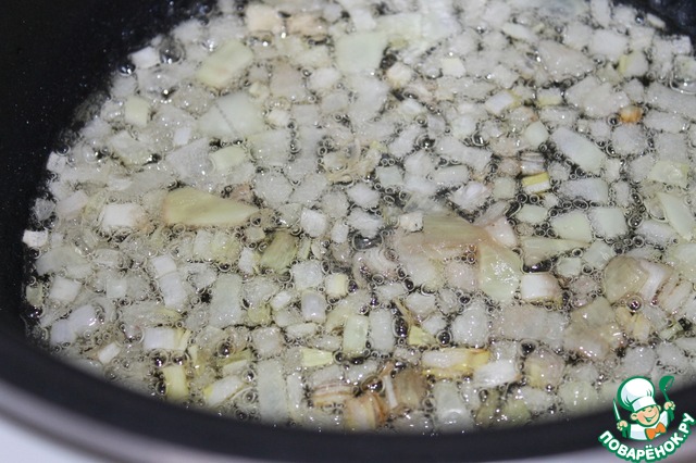Лук порезать мелким кубиком и обжарить до прозрачности
