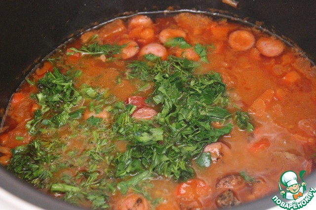 За 20 минут до окончания программы добавить мелко порубленую зелень петрушки и укропа