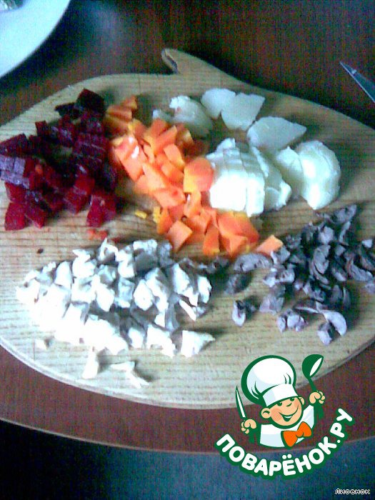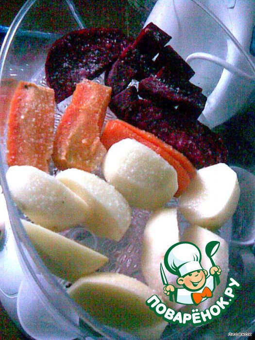 в последний кладем овощи-картофель свеклу и морковь(естественно очищенные).