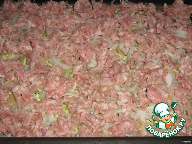 Равномерно разложить фарш,