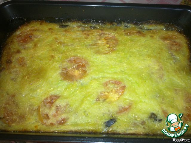 | Обожаю блюда из кабачков. А муж их не любит. Чтобы его "обмануть", приготовила такую нежную запеканочку. Вкус кабачка в сочетании с грибами немного изменился. Запеканка "ушла" за 10 минут! |