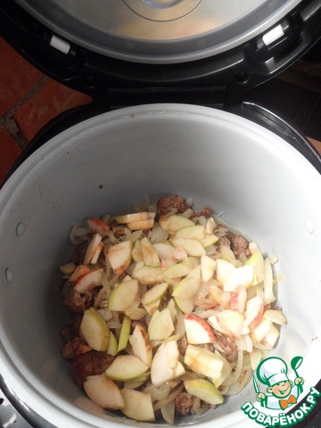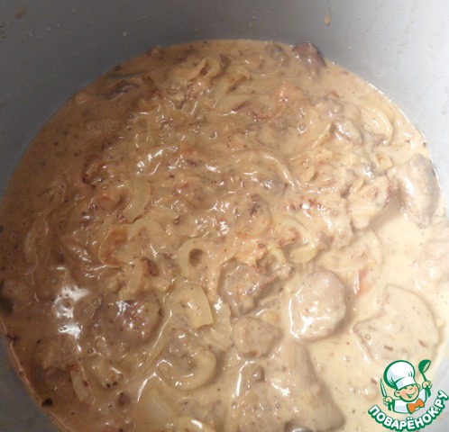 Рецепт "Печень по-берлински с яблоками и луком в сливках":