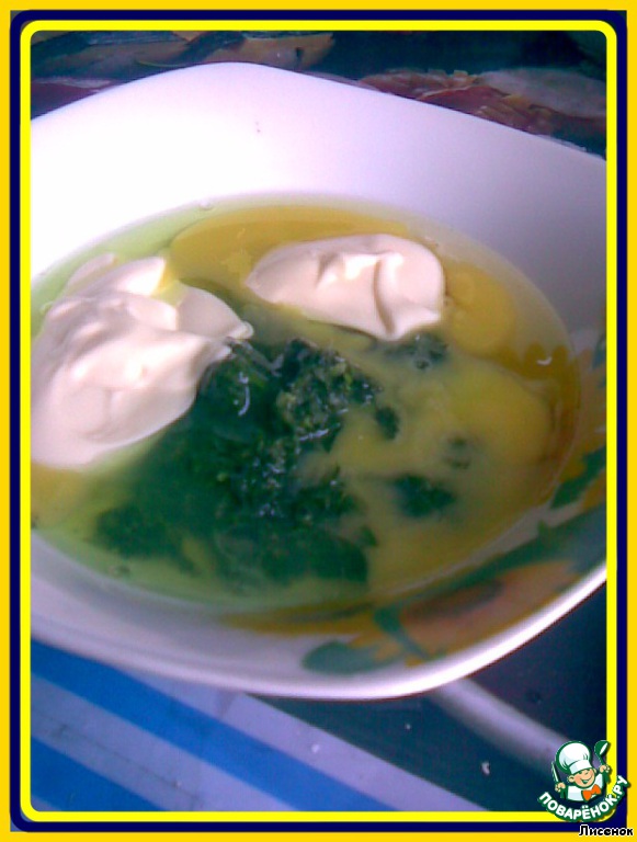 Смешать яйца, майонез, измельченную зелень и соль, перец.