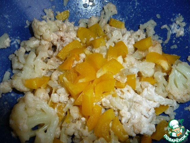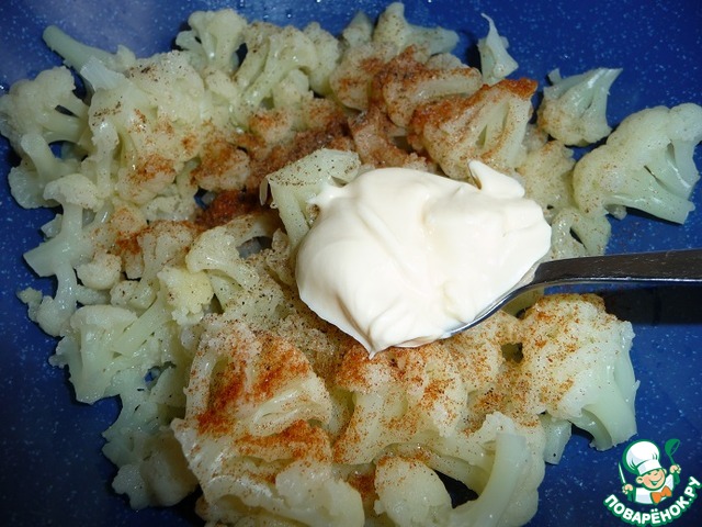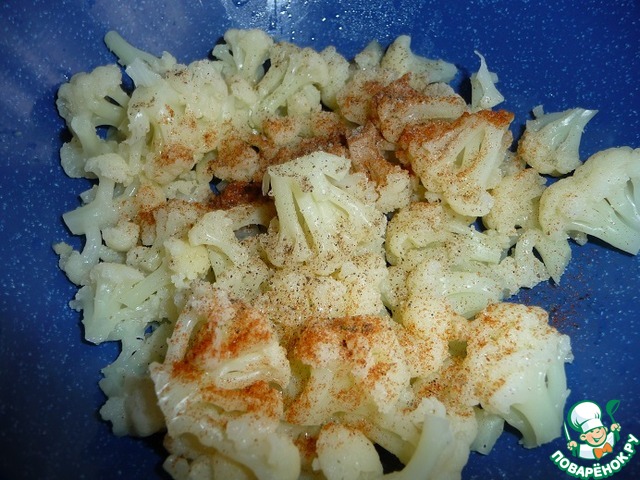 Цветную капусту отварить в подсоленой воде 5 мин. Слить воду.