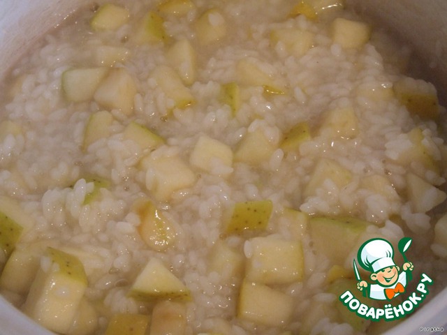 К рису добавить яблоко, хорошо перемешать и варить до готовности. Такой рис можно использовать как гарнир или в качестве самостоятельного блюда.