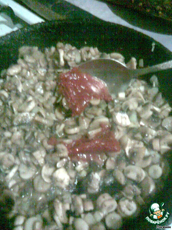 Томатную пасту. Иэээх, хорошо бы помидорок свежих вместо пасты, да не сезон...
