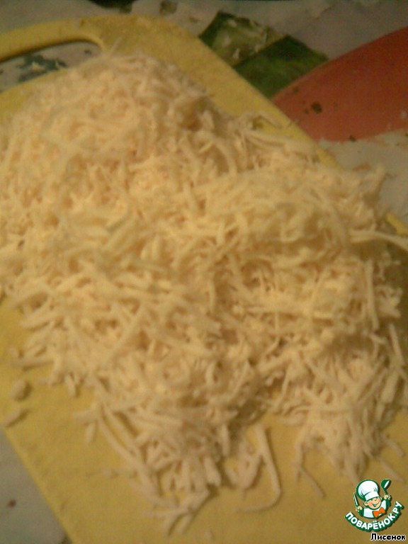 Сыр натереть на терке со средними ячейками.