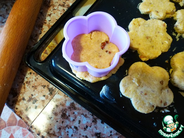Когда на печенье проступит сыр и его цвет станет золотистым, значит печенье готово и его пора вынимать!