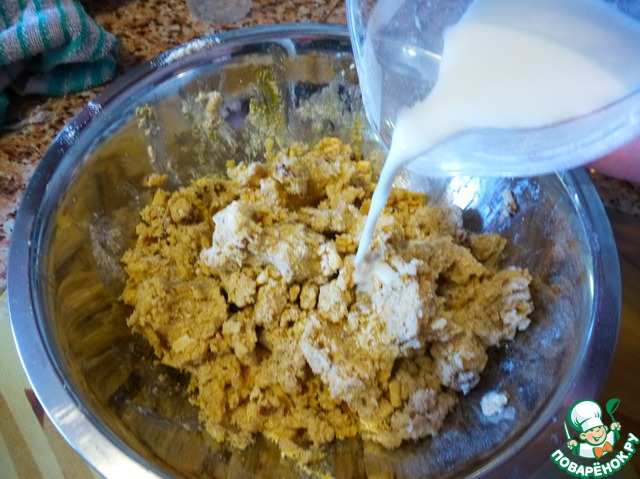 Массу тщательно растереть, добавить к ней молоко и замесить.