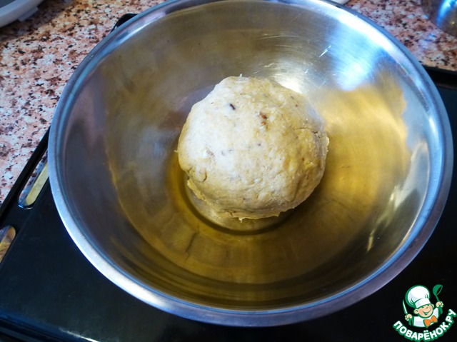 Если тесто сильно липнет к рукам и не хочет формироваться в шарик, добавьте немного пшеничной муки, и все получится.