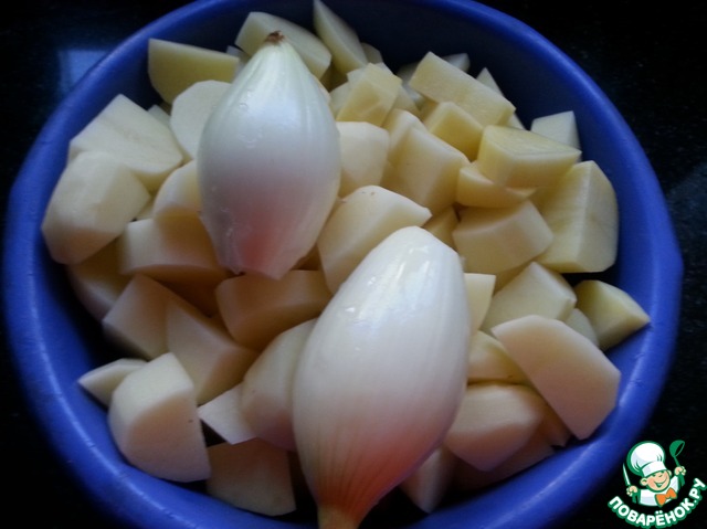 Готовим мясо с подливой. У каждой хозяйки свой рецепт, поэтому напишу кратко. Мясо моем, режем кубиками, обжариваем на растительном масле. Выкладываем в котелок, лук режем кубиками, морковь на крупную терку. Заливаем кипятком, чтобы покрыло мясо и тушим до готовности, в конце тушения посолить и поперчить.