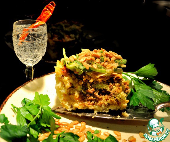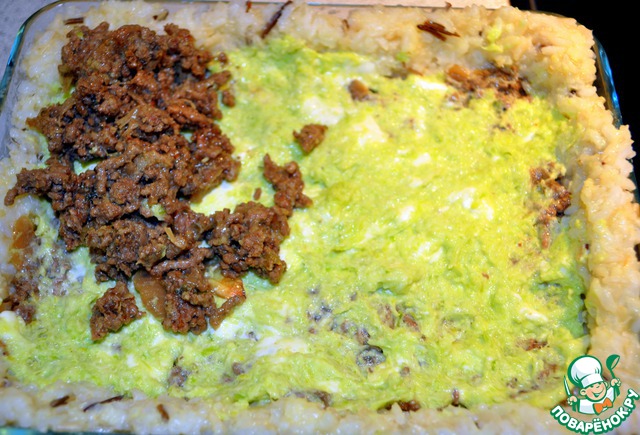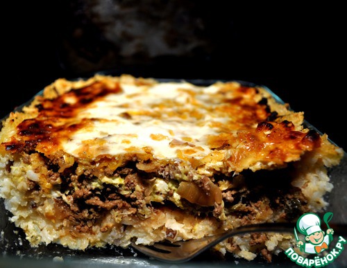 Рисовая запеканка (пирог) с мясом и луком-пореем