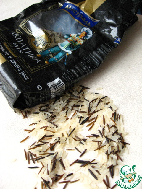 Рис ( я выбрала - Смесь пропаренного и дикого риса «Акватика Mix») - промываем и отвариваем согласно инструкции