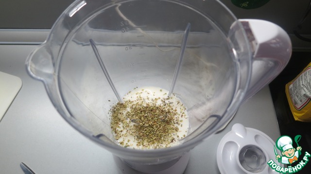 Первоначально я заливаю 200 мл. молока в блендер и насыпаю туда Орегано