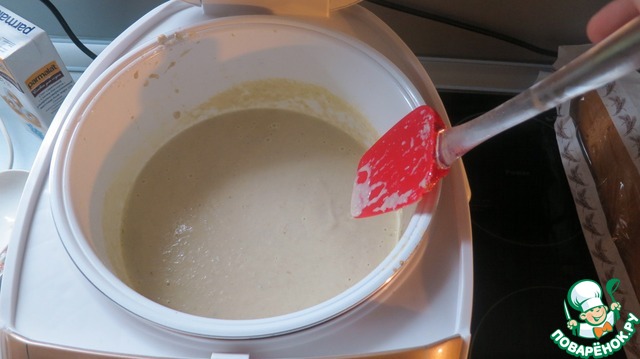 После того как закипит, дать покипеть минут 5, постоянно помешивая. Через 5 мин. высыпать сливки, постоянно помешивая.