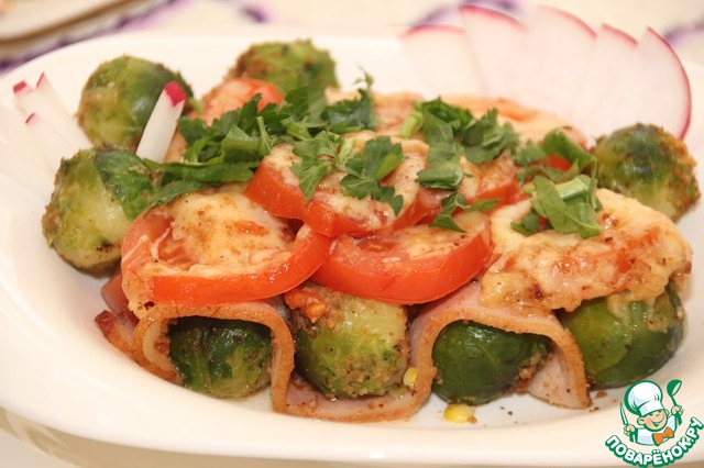 Капуста брюссельская, запеченная" по-милански" с беконом