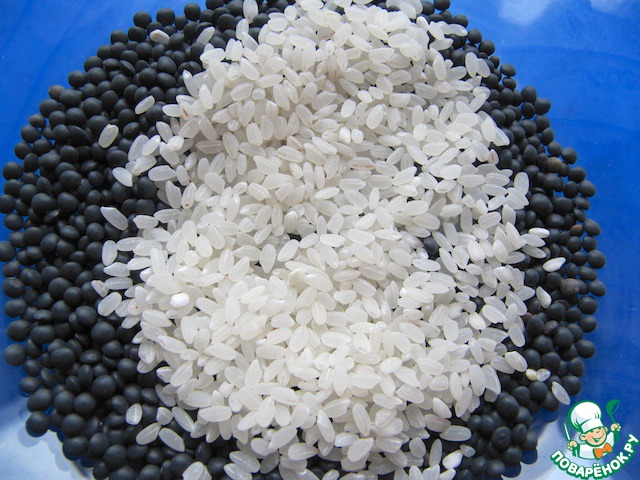 Рис и чечевицу промыть. Я использовала черную чечевицу, так как хотелось контраста в цвете, но можно использовать любую из широкого ассортимента ТМ Мистраль.