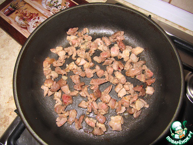 Всыпать и обжарить лук. Добавить свеже смолотые специи и перец (по вкусу).