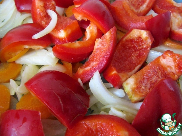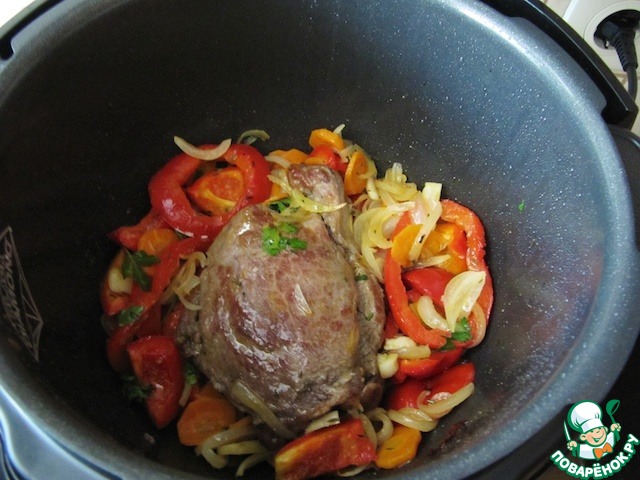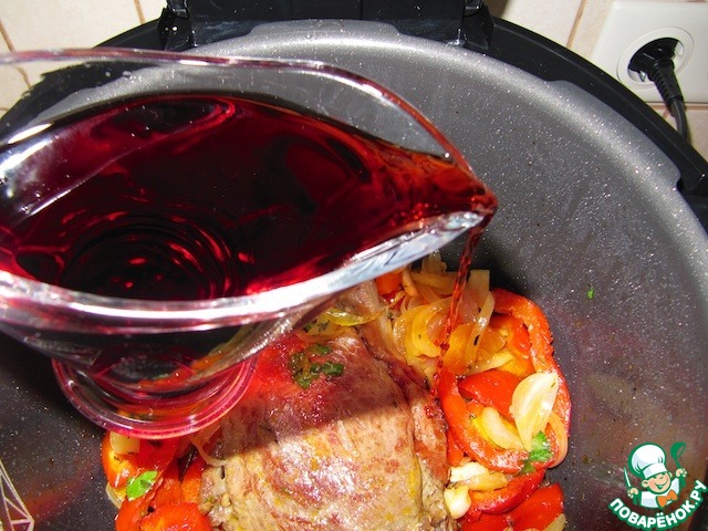 Рецепт "Говяжья вырезка, томленная в вине, со сладким перцем и тимьяном":