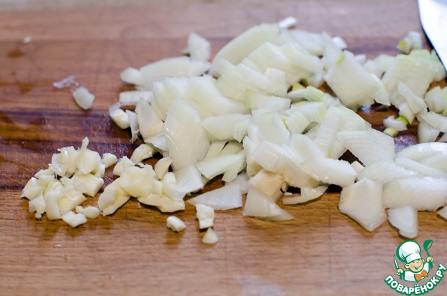 Лук и чеснок очистить от шелухи и мелко нарезать.