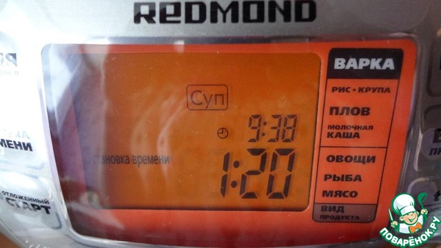 Устанавливаем программу мультиварки "Суп", время приготовления 1 час 20 мин.