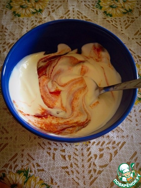 Смешайте 3 ст л сметаны с 2 ст л томатной пасты.