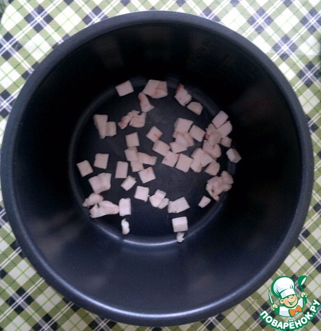 Сало режу кубиками по 1 см