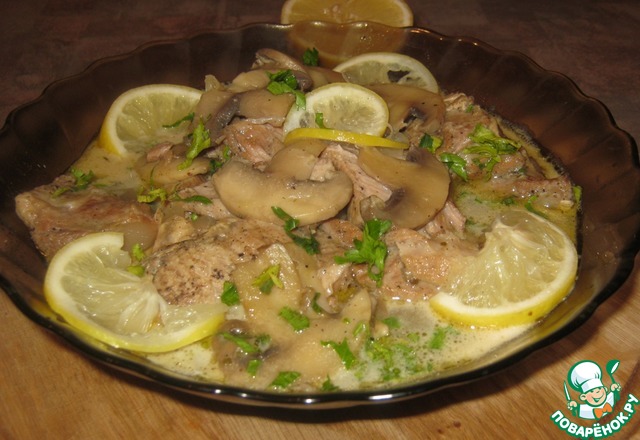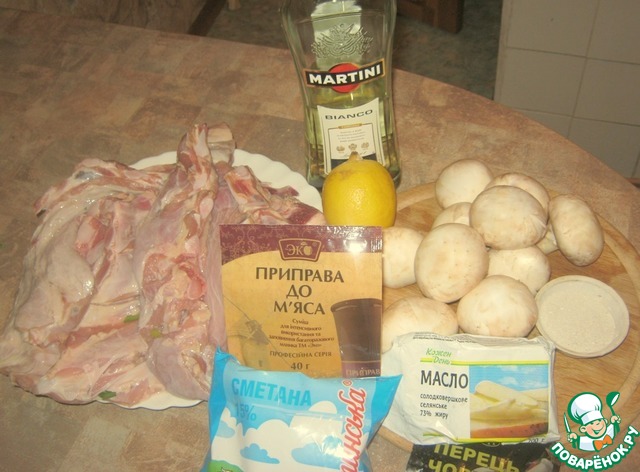 Рецепт "Сочная телячья грудинка по-французски с шампиньонами":