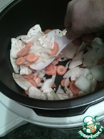 Рецепт "Телячья грудинка с овощами в мультиварке":