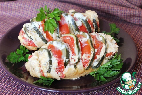 В разрезы укладываю дольку помидора и дольку кабачка.