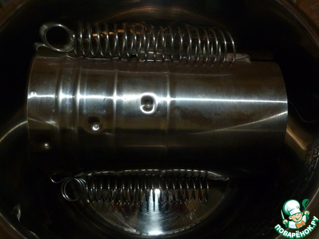 В общем, форму в чашу положили. Теперь заливаем по максимум воду. Для быстроты лучше залить горячую, но не крутой кипяток. Можно среднюю умеренную горячую воду прямо из-под крана. Далее, закрываем крышку мультиварки, включаем режим "суп" или "варка". Время ставим 1 час 30 минут. Или 2 часа. Если отсчет времени начинается не от момента закипания воды, а сразу от нажатия кнопки "старт", то ИМХО лучше поставить время 2 часа.