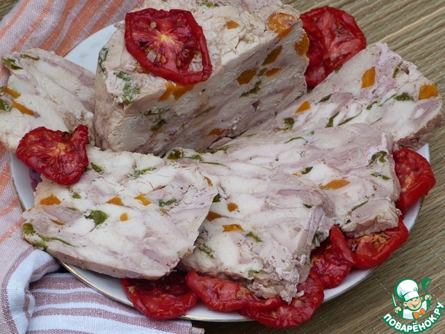 Ну вот форма с ветчиной достаточно настоялась в холодильнике, открываем форму и извлекаем ветчину. И...