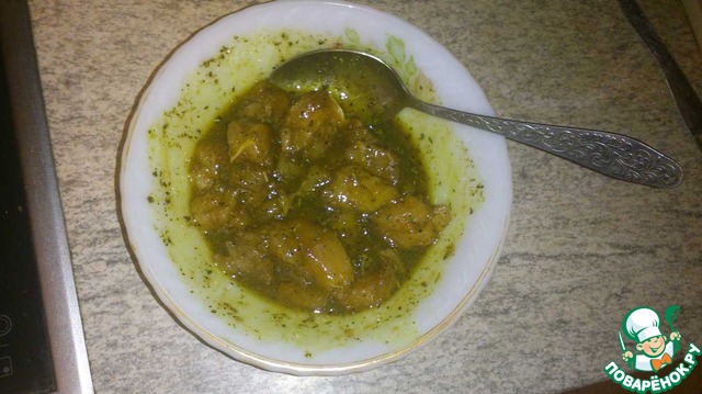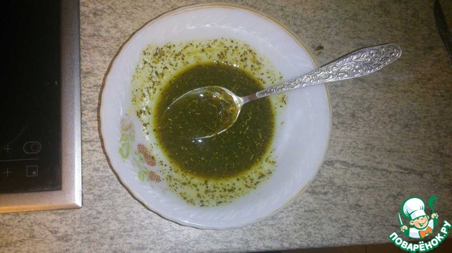 Для начала, займемся маринованием филе. Соевый соус смешиваем с растительным маслом и уксусом. Уксус можно взять любой (например рисовый). Солим, перчим, добавляем прованские травы. Кто не любит маринованное мясо в первых блюдах, этот шаг пропускаем.