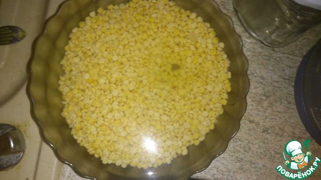 Промываем колотый желтый горох и замачиваем на пол часа. В следующий раз, наверное, попробую чечевицу или какие нибудь другие бобовые, или смесь-)