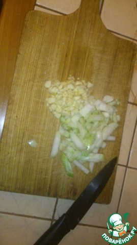 Начинаем делать зажарку. Крошим лук и чеснок кому как нравится.