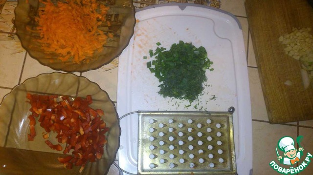 Морковь трем, болгарский перец режем кому как нравится.