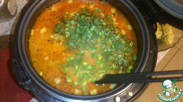 Минут за 15-20 до готовности всыпаем сыр, постоянно помешивая. Когда он разойдется добавим зелень. Опять перемешаем. Закрываем и ждем звоночек о готовности. Получилось вкусно. Всем Приятного Аппетита. Ну и как всегда - Всем АНГЕЛА!!!