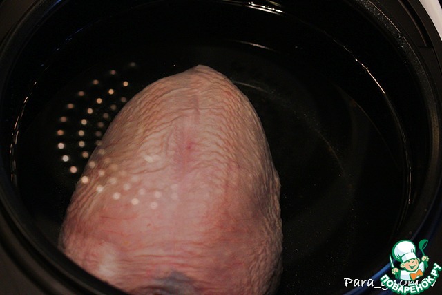 1. Грудку промыть. Налить в чашу мультиварки воду, добавить соль и отварить грудку на режиме "Суп" в течениe 1,5 часов. Я обычно ставлю варить грудку на ночь. После окончания программы она стоит на подогреве и томится всю ночь. Утром мясо получается нежнейшим, а бульон наваристым. Но если время ограничено, то можно воспользоваться первым вариантом.